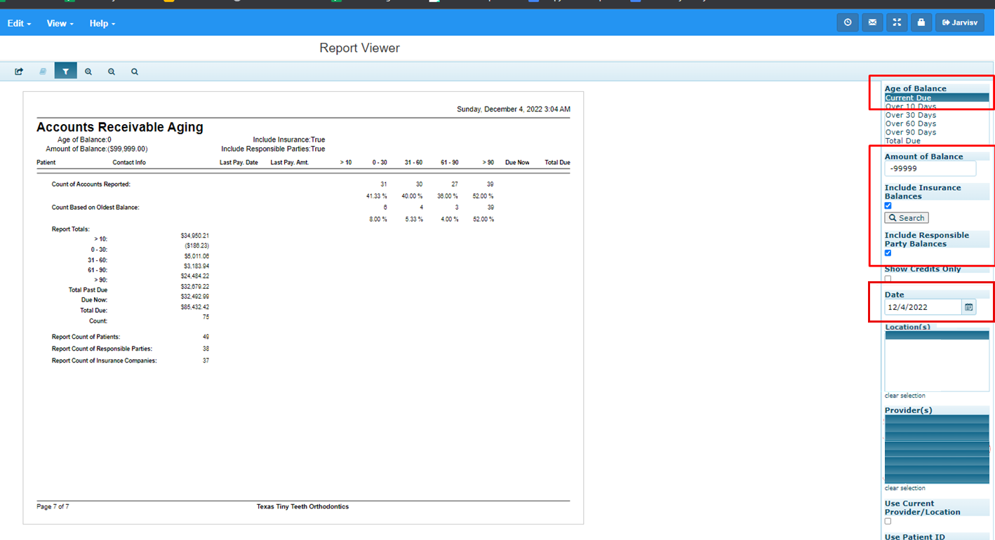 To create the Aging report in Cloud 9 that matches Jarvis’ Aging module, while on the main page of Cloud 9, go to Reports > Accounts Receivable Aging By Patient.